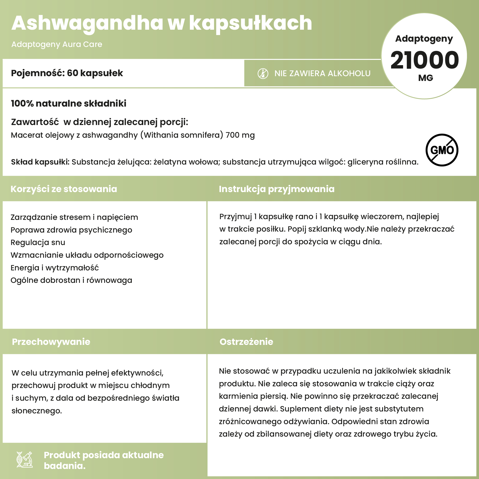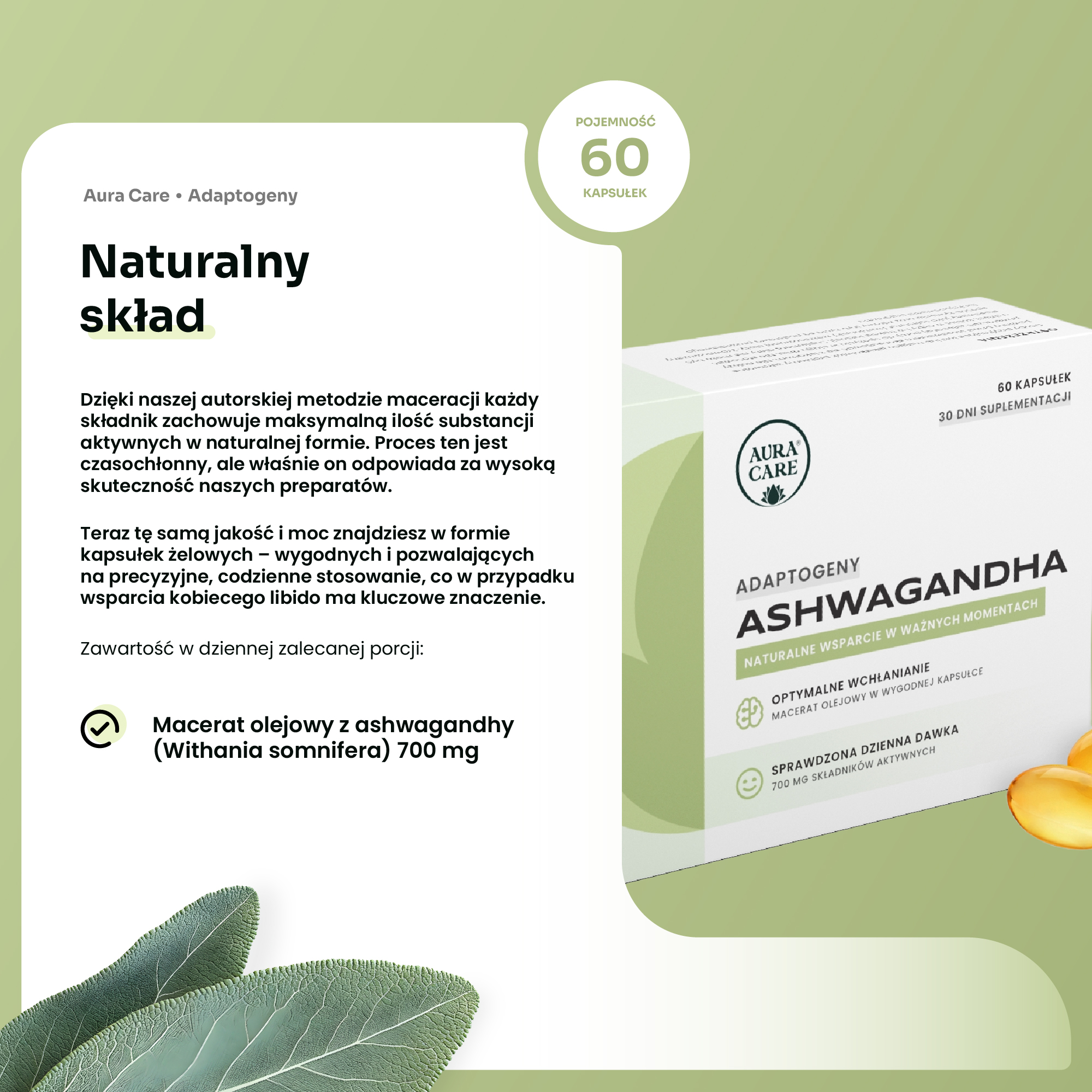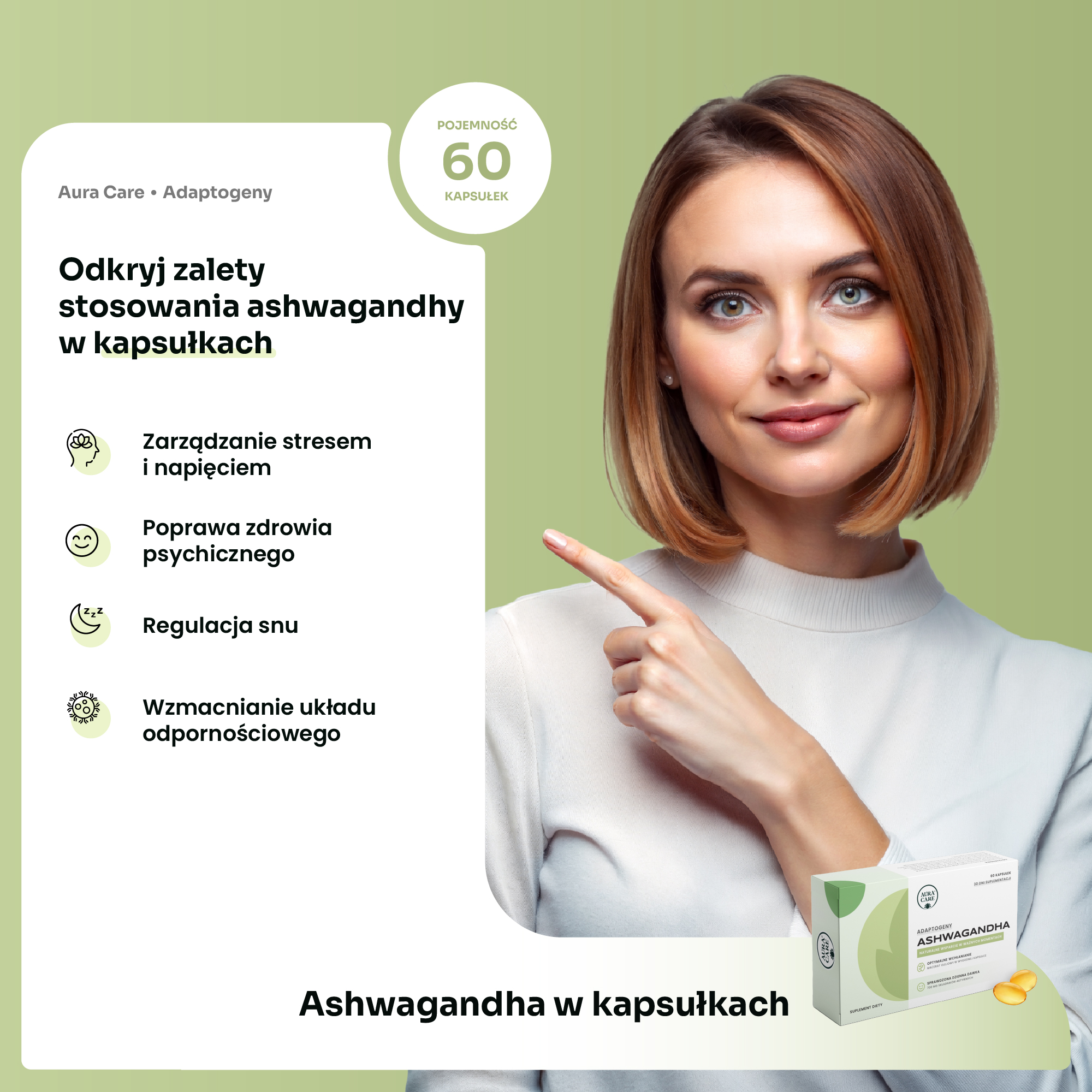 Ashwagandha – Adaptogen w kapsułkach żelowych Aura Care