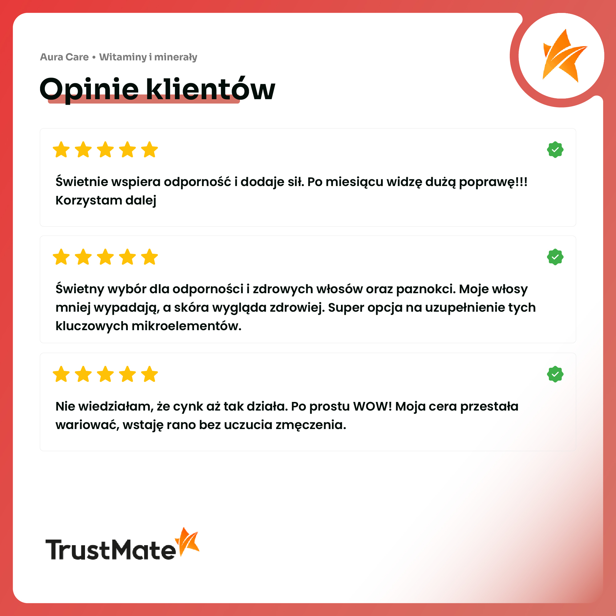 Regularne uzupełnianie cynku i witaminy B12 może pomóc w utrzymaniu wysokiego poziomu energii, lepszej odporności oraz zdrowia skóry, włosów i układu nerwowego.