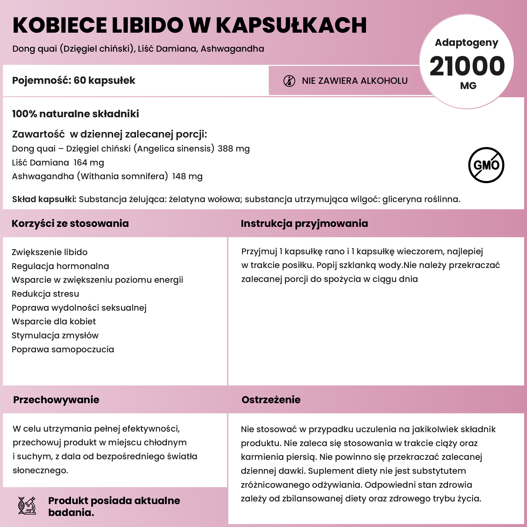 Teraz tę samą jakość i moc znajdziesz w formie kapsułek żelowych – wygodnych i pozwalających na precyzyjne, codzienne stosowanie, co w przypadku wsparcia kobiecego libido ma kluczowe znaczenie.