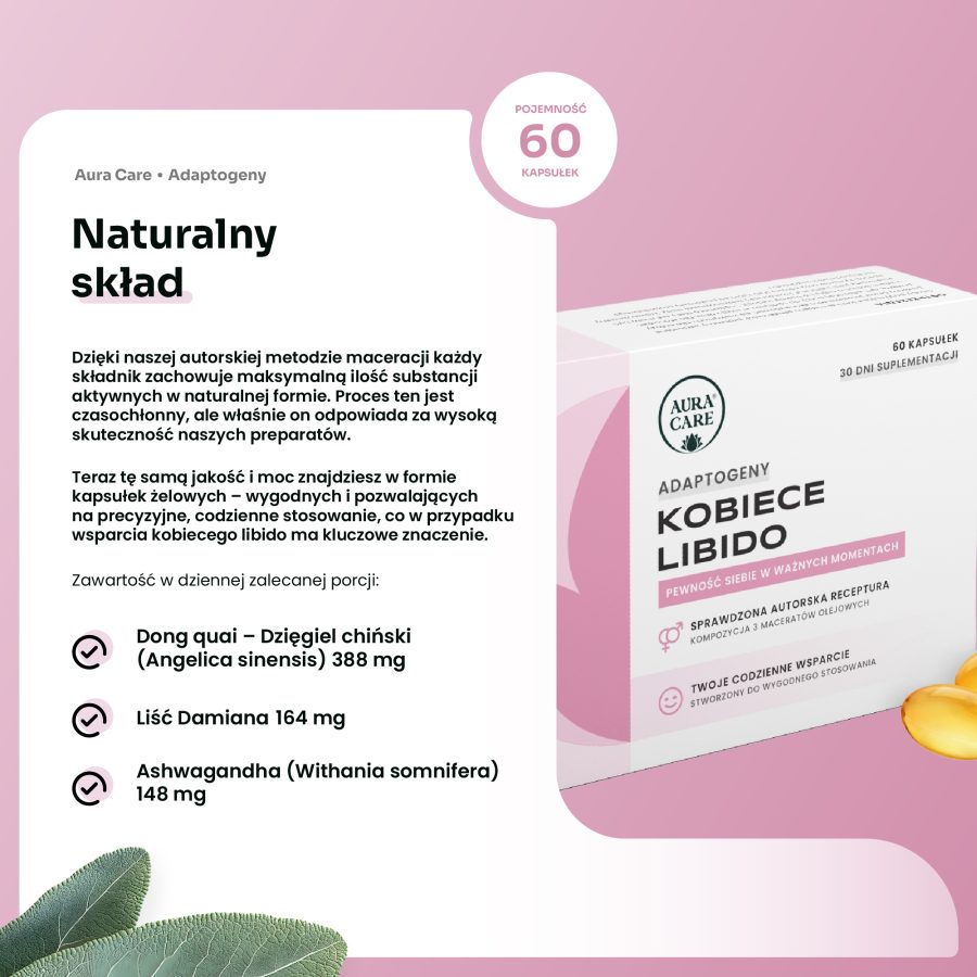 Kobiece Libido – Adaptogeny w kapsułkach żelowych Aura Care