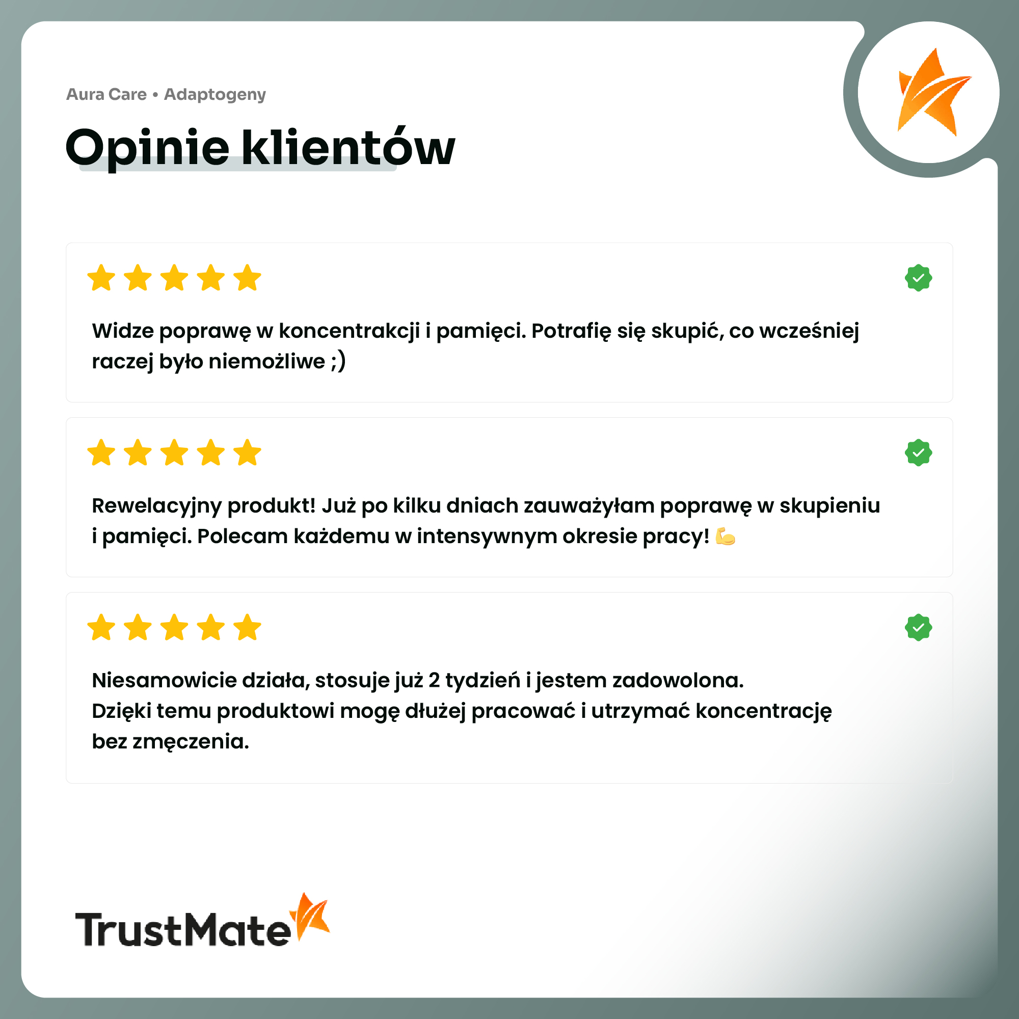 W dzisiejszym szybkim tempie życia często potrzebujemy czegoś więcej, aby utrzymać naszą produktywność i koncentrację na najwyższym poziomie. Jeśli pragniesz zyskać przewagę w pracy, podczas treningów lub podczas kluczowych spotkań, to "Koncentracja" od Aura Care może być Twoim najlepszym sprzymierzeńcem.