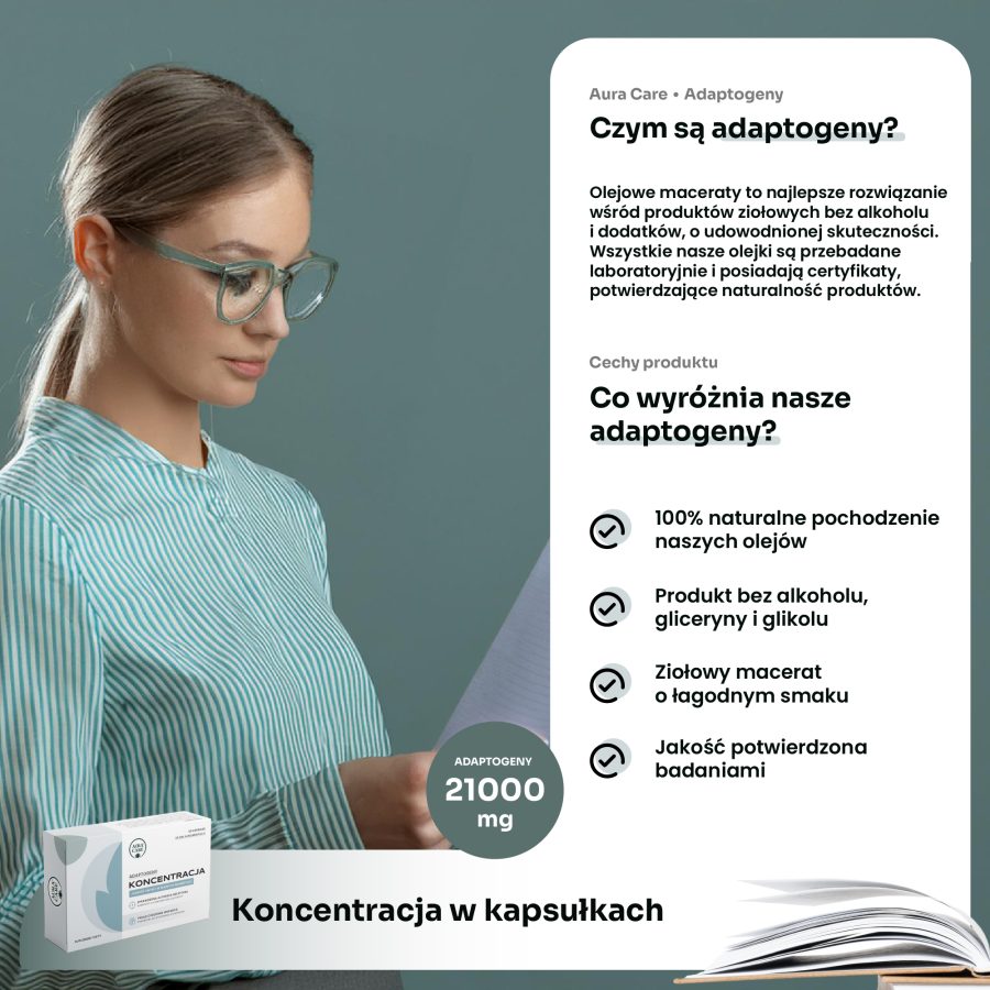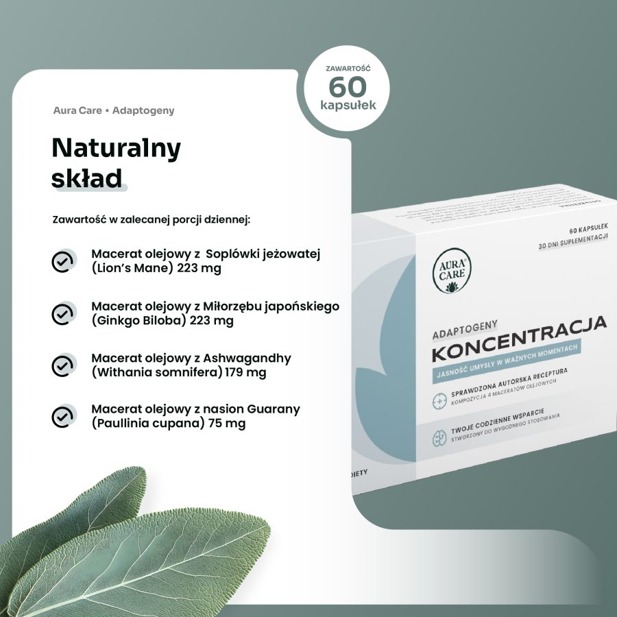 Koncentracja – Adaptogeny w kapsułkach żelowych Aura Care