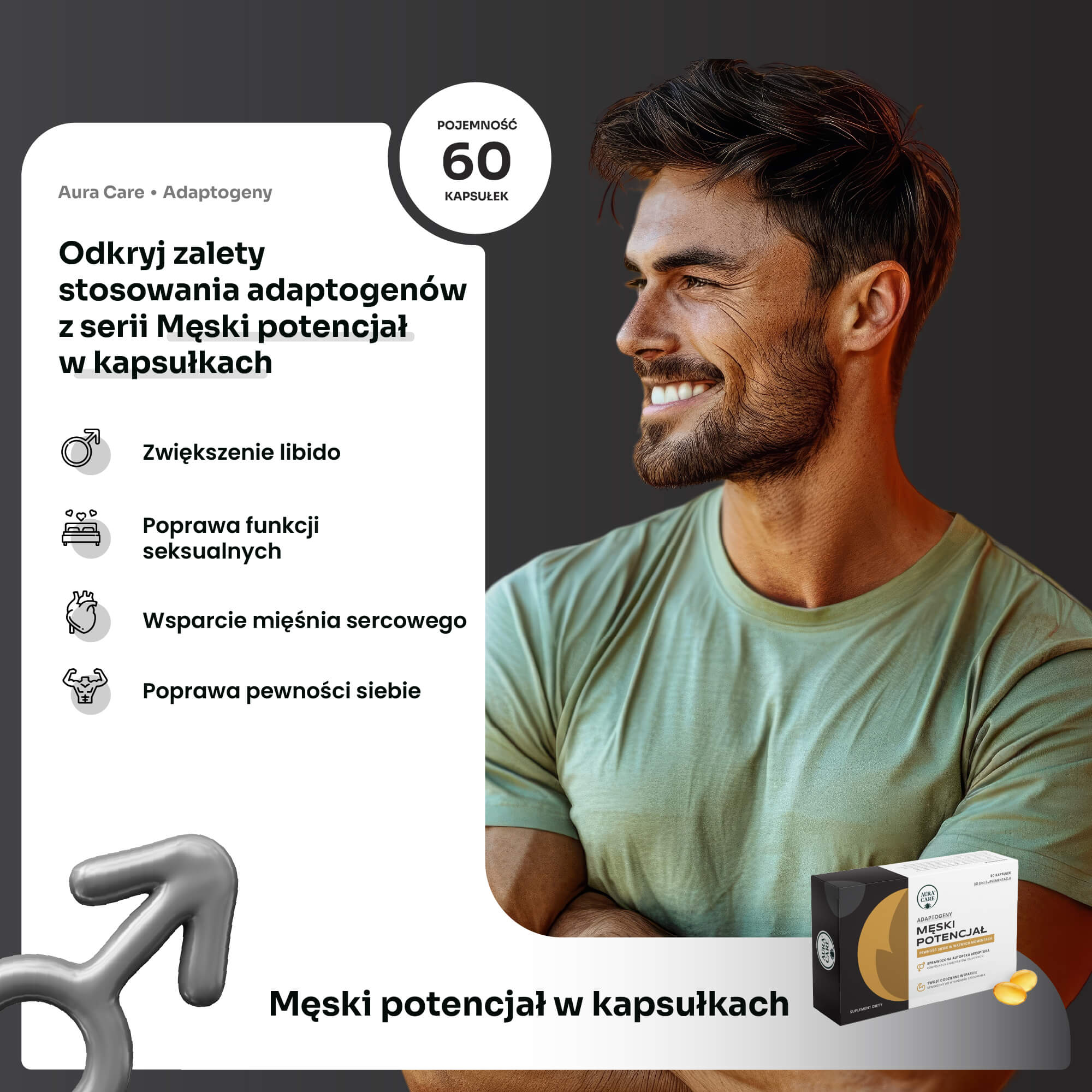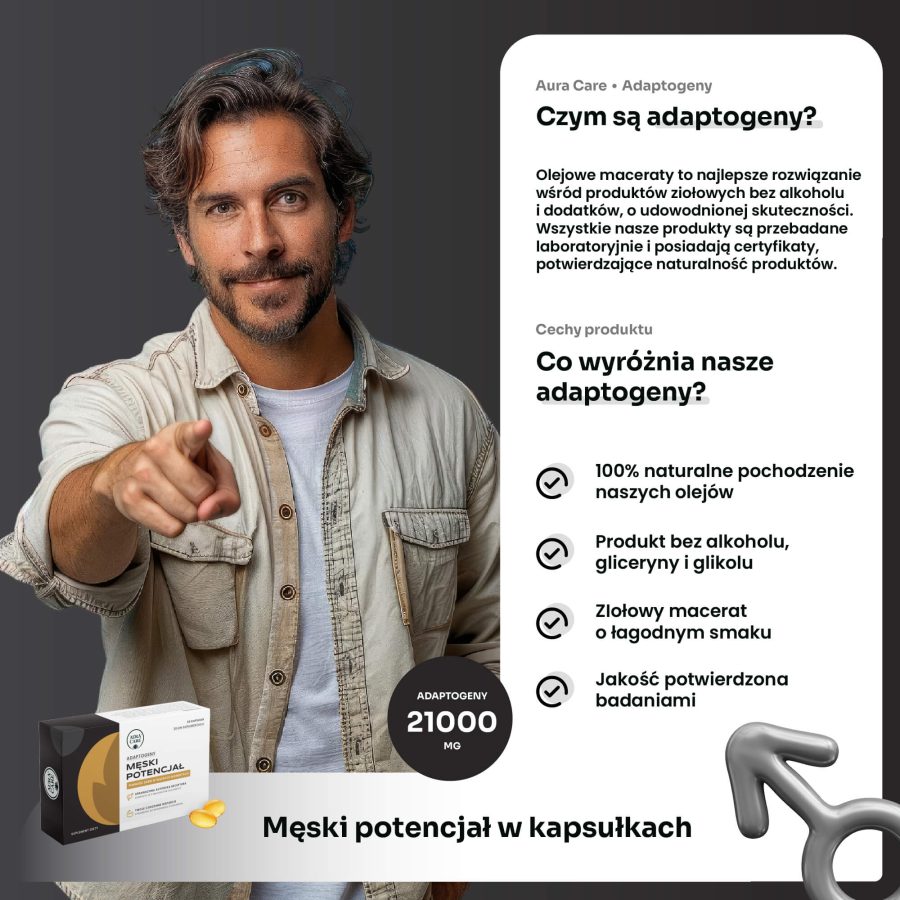 Męski Potencjał – Adaptogeny w kapsułkach żelowych Aura Care