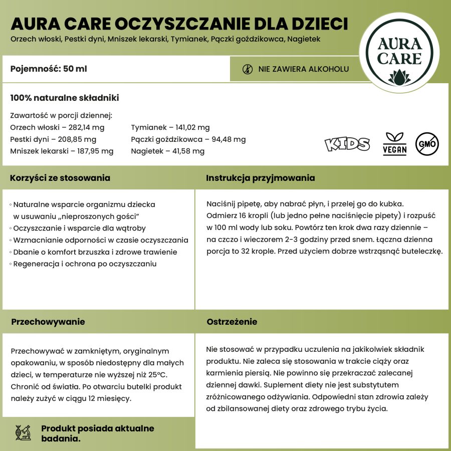 Aura Care – Oczyszczanie Kids Dwukierunkowe wsparcie przy odrobaczaniu i oczyszczaniu organizmu dziecka