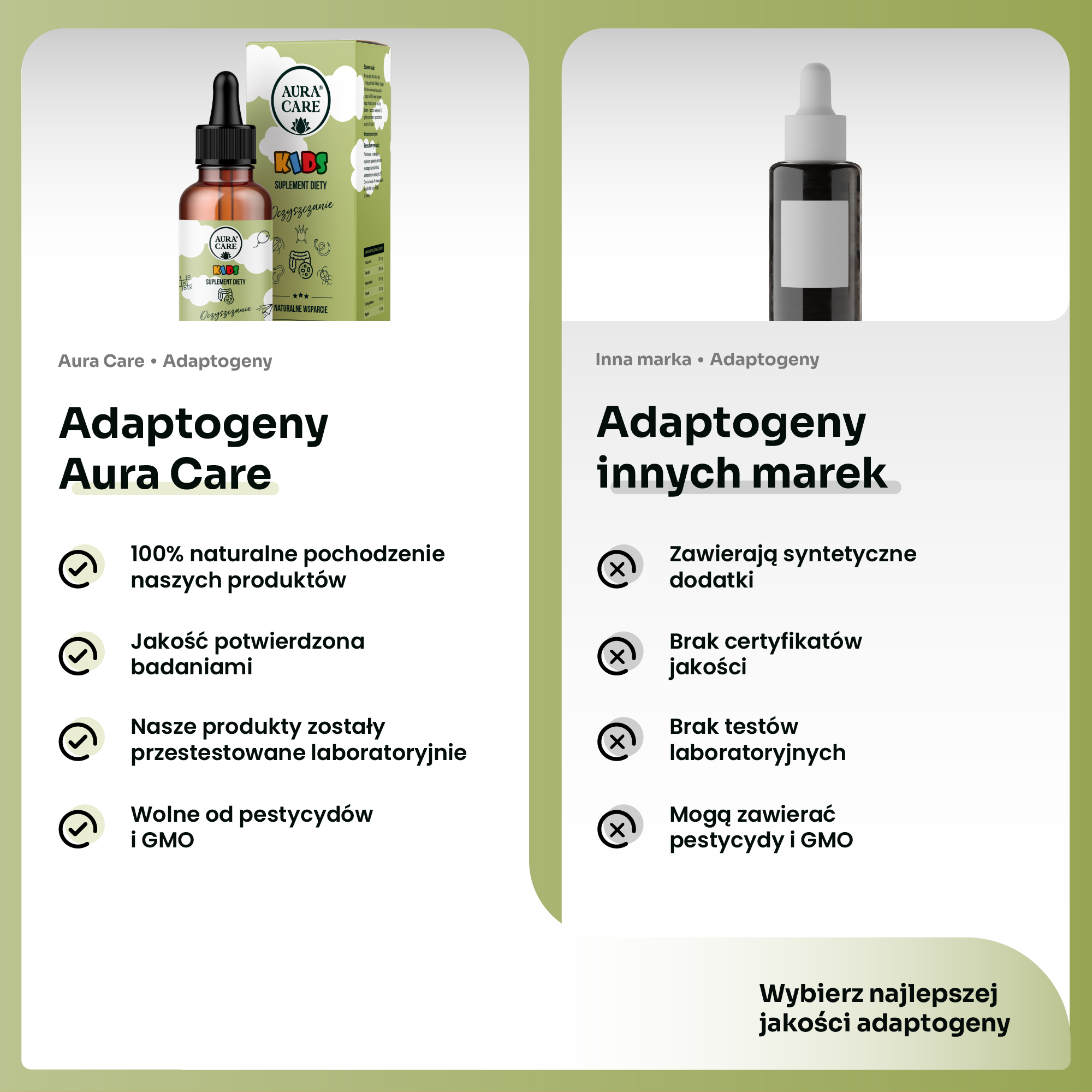 Przed rozpoczęciem suplementacji, zwłaszcza u dzieci poniżej 3. roku życia, zaleca się konsultację z lekarzem, fitoterapeutą lub skorzystanie z naszej  Bezpłatnej konsultacji Aura Care,