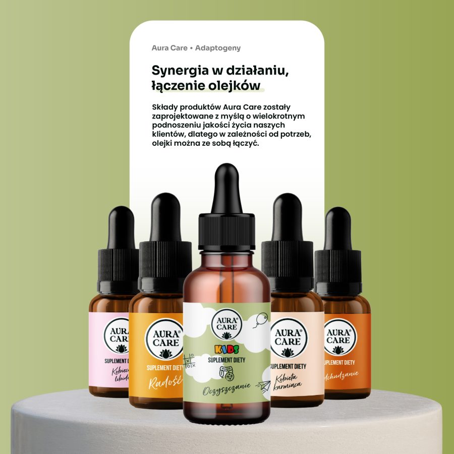 Połączenie Aura Care – Oczyszczanie Kids z Radosnym Brzuszkiem to naturalny, łagodny sposób, by kompleksowo zadbać o organizm dziecka – od środka, w zgodzie z naturą.