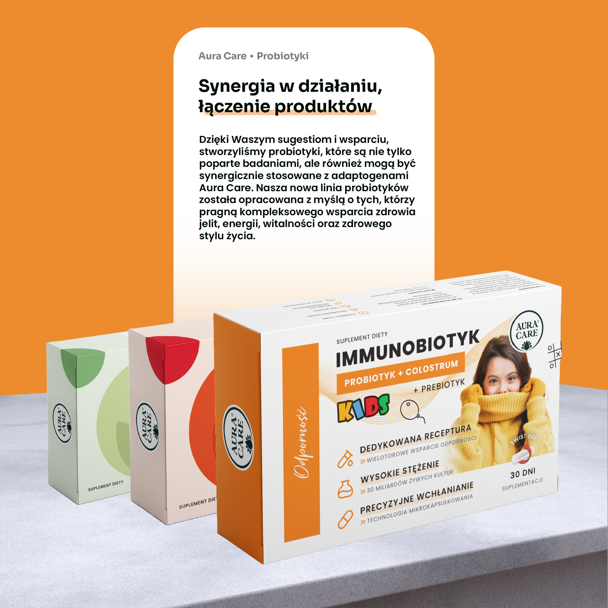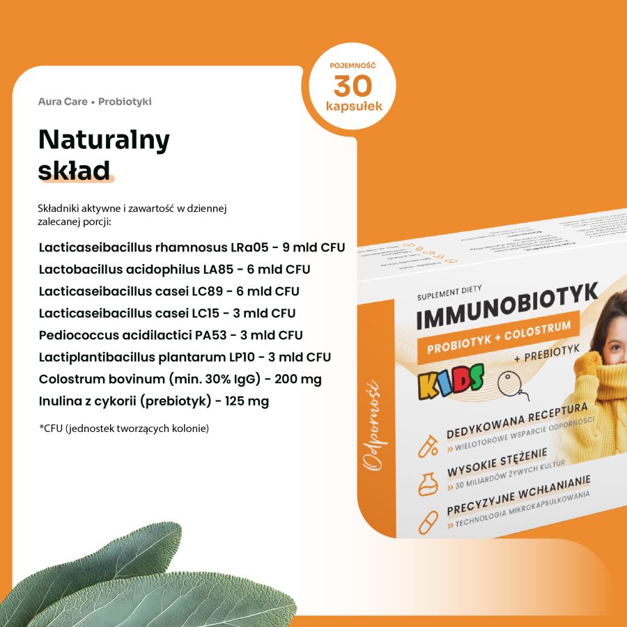 Aura Care – Immunobiotyk Kids | Wielotorowe wsparcie odporności i mikrobiomu dziecka