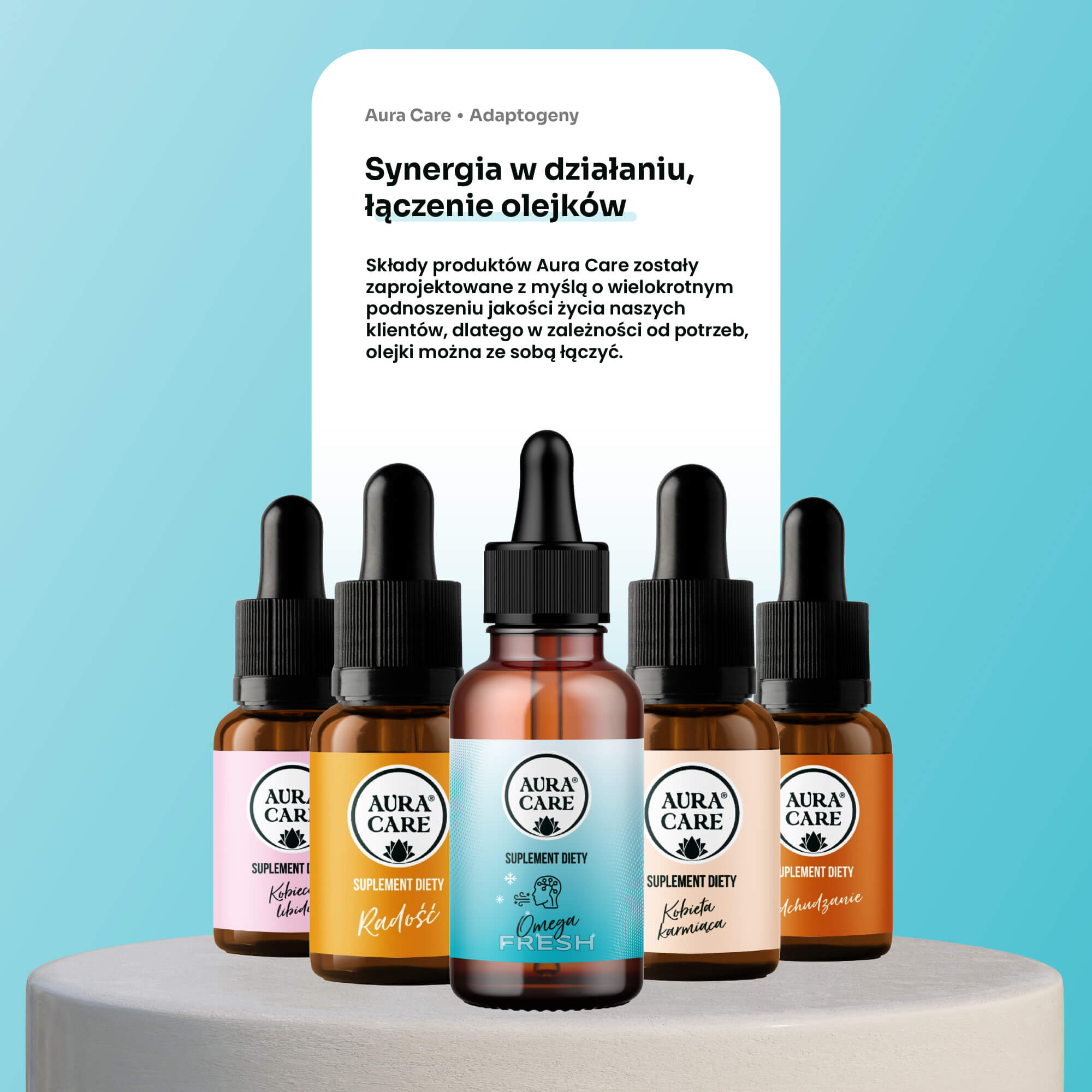 Składy produktów Aura Care zostały zaprojektowane z myślą o wielotorowym podnoszeniu jakości życia naszych klientów dlatego w zależności od potrzeb olejki można ze sobą łączyć. Jeśli masz pytania dotyczące stosowania, użyj chatu. Pomożemy.