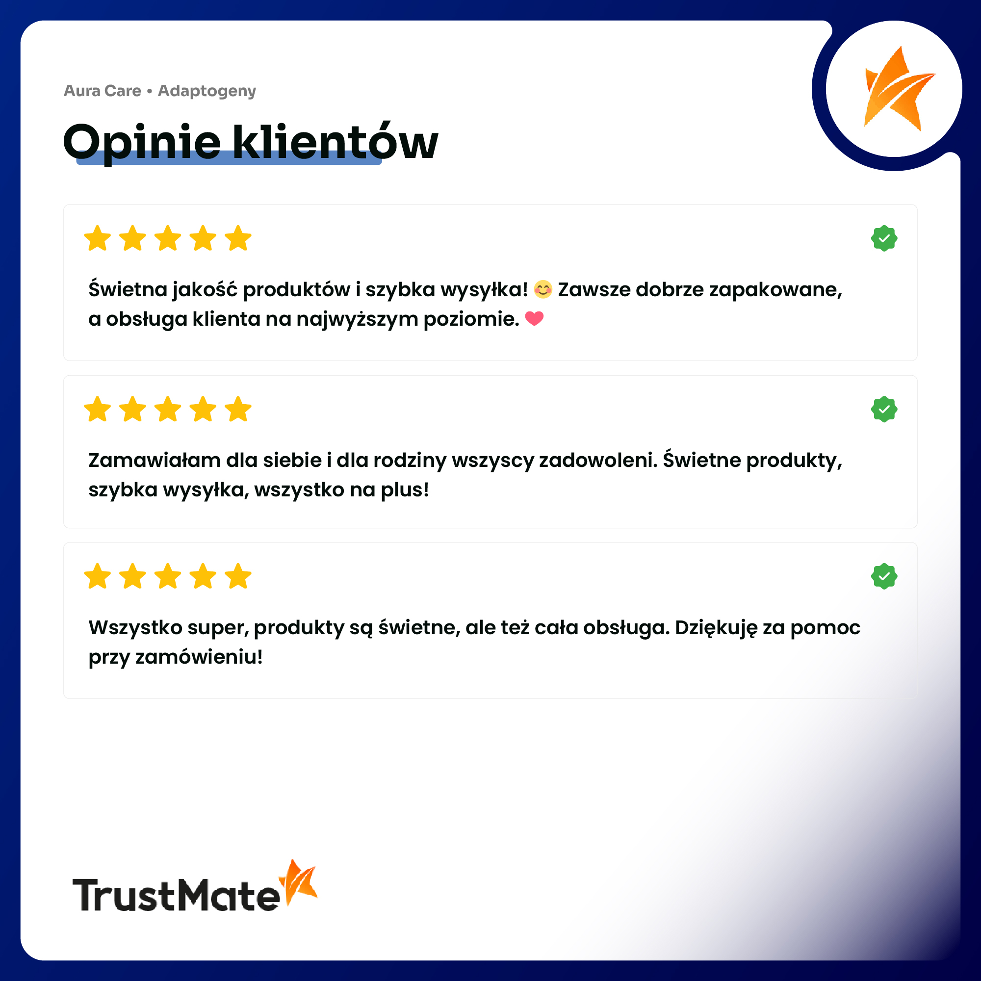 W Aura Care nieustannie dążymy do doskonałości, dlatego nasze adaptogeny to rezultat wieloletnich badań i rygorystycznej selekcji składników. Każdy preparat przechodzi szczegółowe testy skuteczności, dzięki czemu oferujemy produkty o wyjątkowej biodostępności i koncentracji substancji aktywnych. Adaptogeny Aura Care = maksymalna efektywność działania