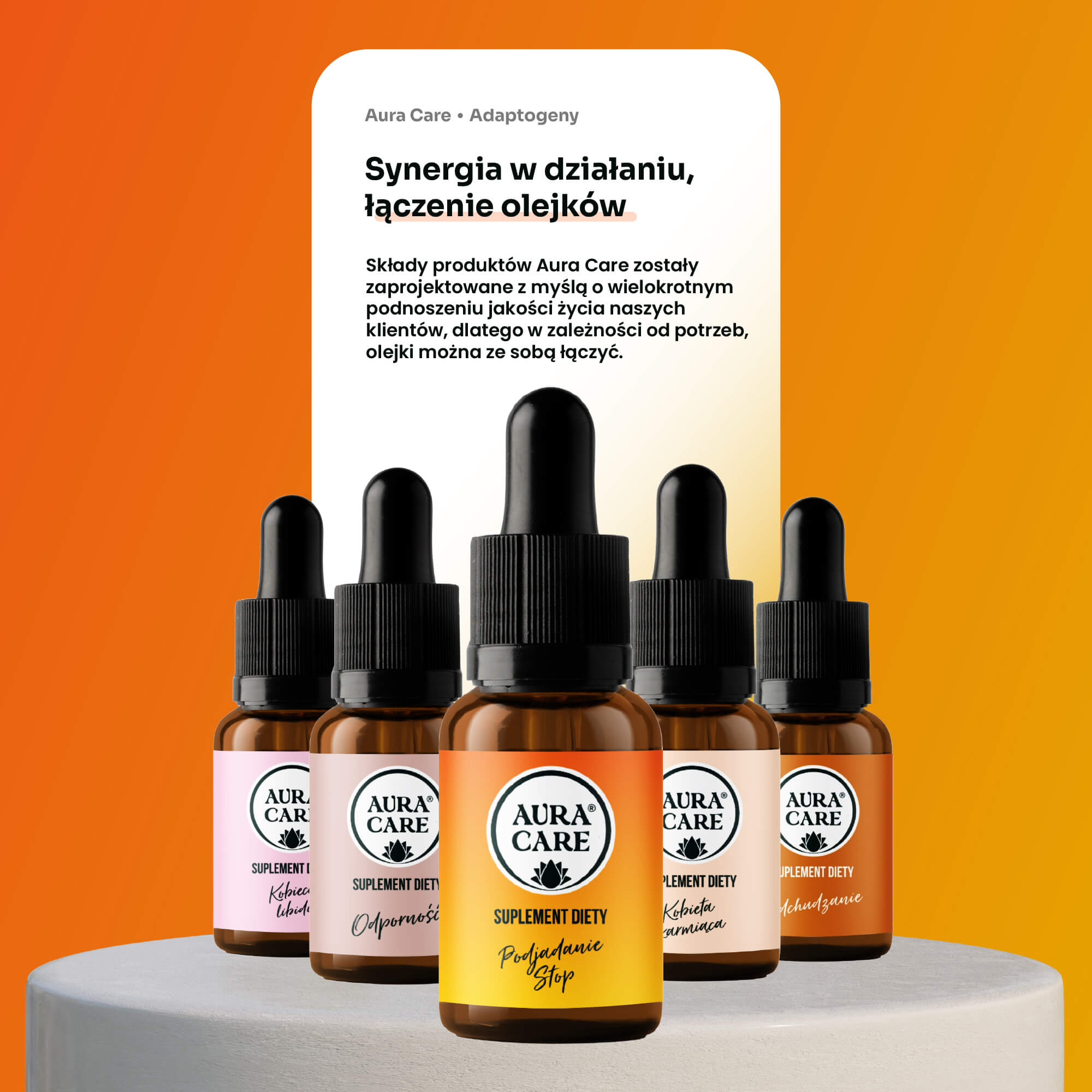 Składy produktów Aura Care zostały zaprojektowane z myślą o wielotorowym podnoszeniu jakości życia naszych klientów dlatego w zależności od potrzeb olejki można ze sobą łączyć. Jeśli masz pytania dotyczące stosowania, użyj chatu. Pomożemy.