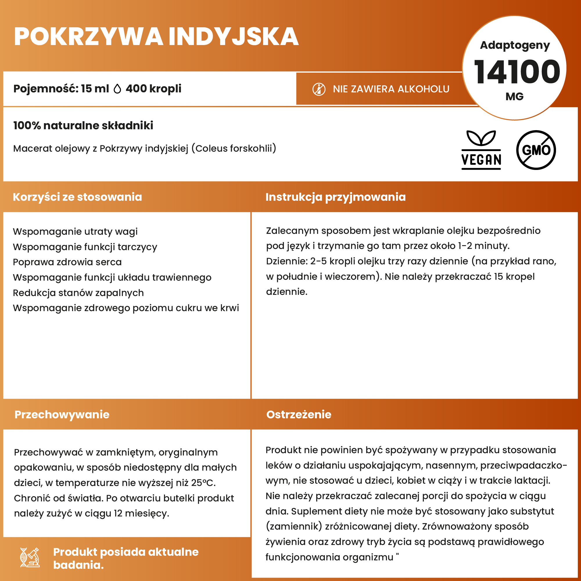 | Zawartość adaptogenów | 14100 mg |