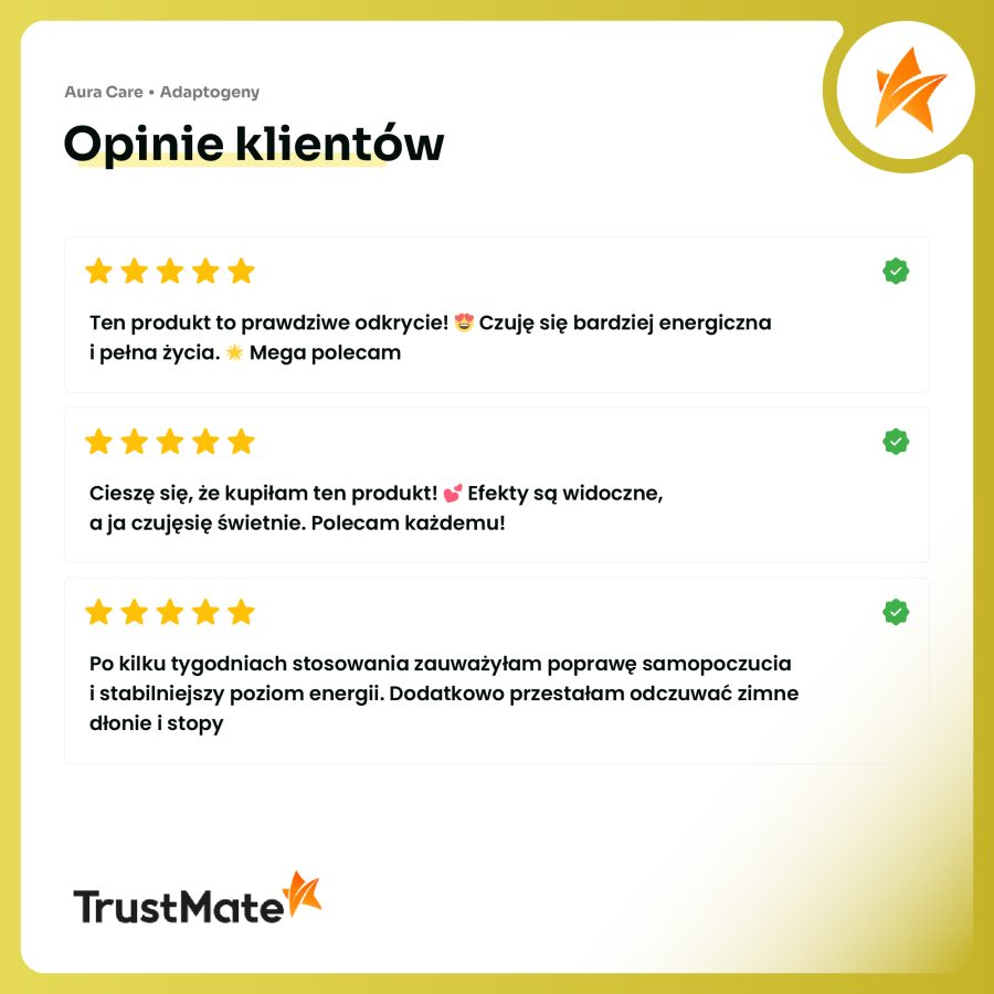 W Aura Care nieustannie dążymy do doskonałości, dlatego nasze adaptogeny to rezultat wieloletnich badań i rygorystycznej selekcji składników. Każdy preparat przechodzi szczegółowe testy skuteczności, dzięki czemu oferujemy produkty o wyjątkowej biodostępności i koncentracji substancji aktywnych. Adaptogeny Aura Care = maksymalna efektywność działania